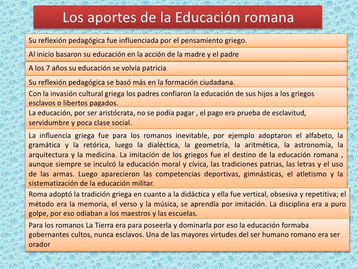 Si los jóvenes eran plebeyos aprendían artesanía, agricultura, la historia de sus tradiciones, las leyes del imperio, los drogmas, usos y costumbres; las mujeres recibían todo aquello que las ayudaran a ser buenas amas de casa y madres.